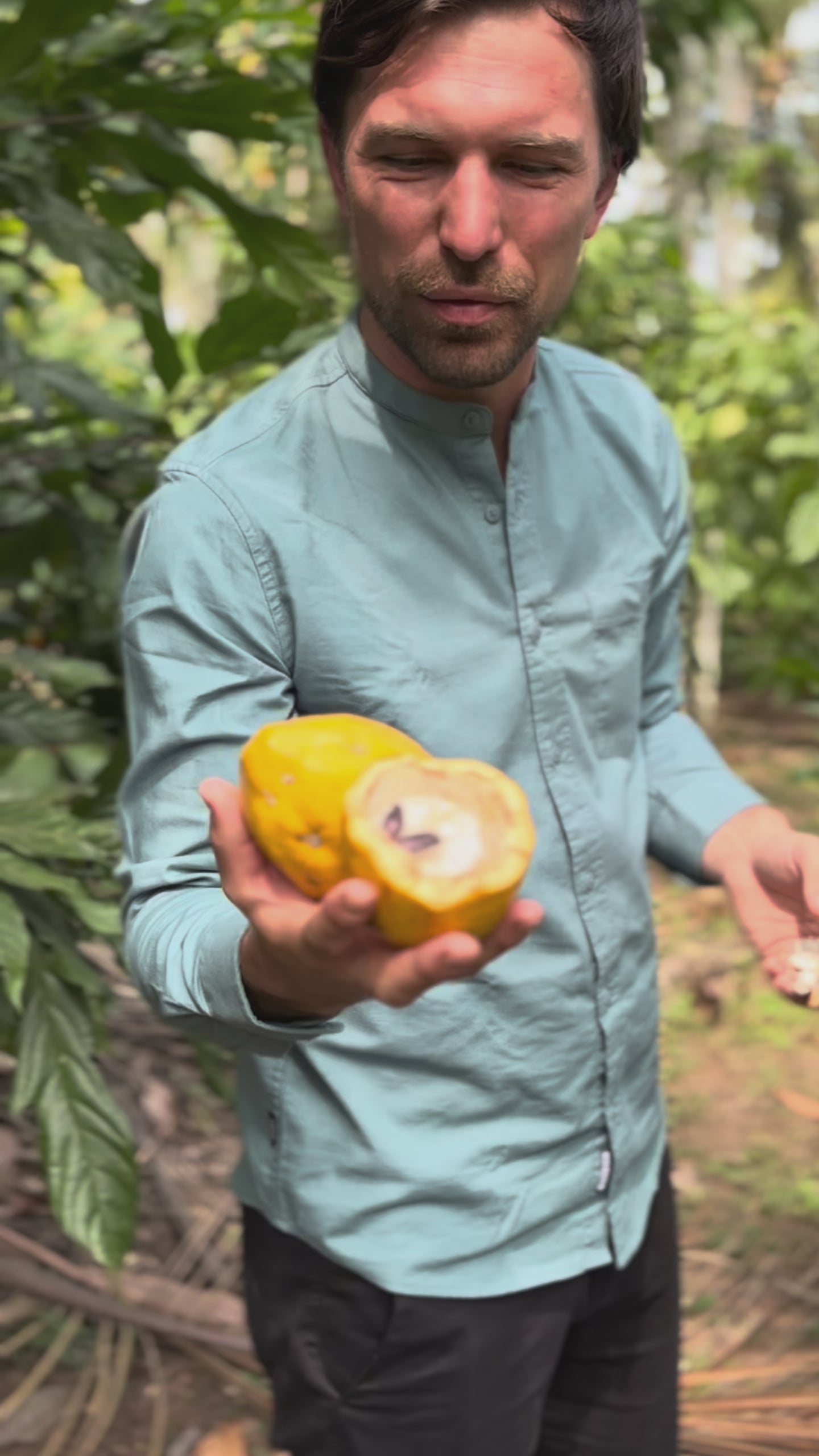 Die gelben, grünen oder roten Früchte des Kakao-Baumes werden von Hand geerntet und anschließend aufgeschlagen. Im Inneren befinden sich die Kakaobohnen. Die frisch geernteten grasgrünen Kakaobohnen werden anschließend für 1 - 2 Wochen fermentiert. Dadurch entsteht die charakteristische schokobraune Farbe. Im letzten Schritt werden die Bohnen in der Sonne getrocknet. Für die Weiterverarbeitung zu Nibs werden die Kakaobohnen zunächst geröstet, geschält und anschließend grob zerkleinert.